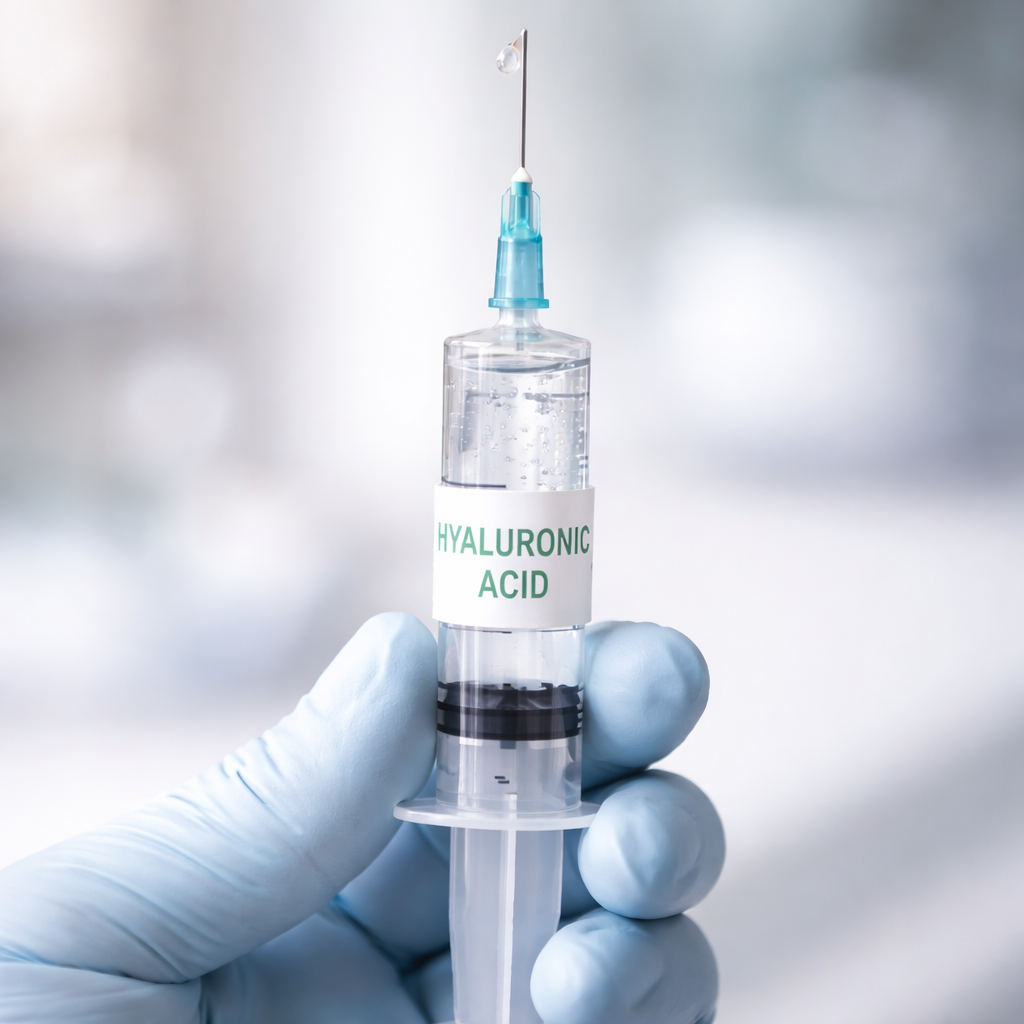 Hyaluronová kyselina je přirozenou součástí synoviální tekutiny. U artrózy její množství i kvalita klesá → kloub hůř klouže. Injekce zlepší viskozitu a lubrikaci. -